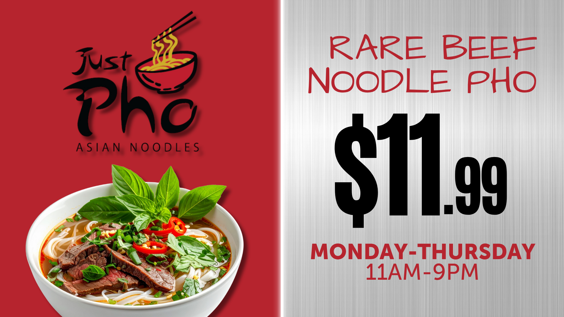 Whether you're after a quick bite or a relaxing meal, Just Pho is your go-to for fresh, satisfying Asian fare — no fuss, all flavour.